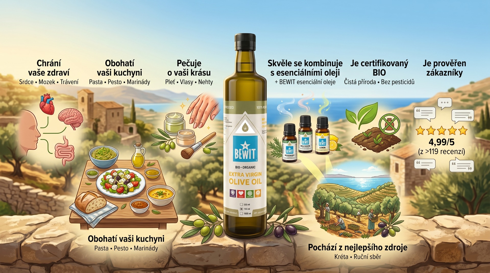 Tento komplexní průvodce světem BEWIT Extra panenského olivového oleje BIO z Kréty vám otevře oči — a možná zjistíte, že tento jediný produkt dokáže nahradit celou řadu věcí, které teď kupujete jinde a za mnohem více peněz.